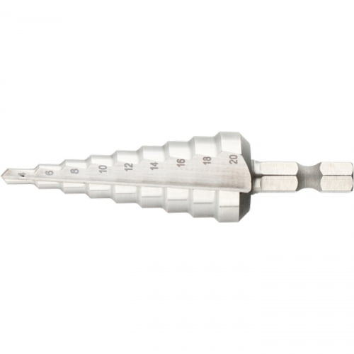 В нашем магазине «Главэлектрика» в Дзержинске, вы можете приобрести товар: «Сверло ступенч. 4-20мм, 9 ступ., шаг 2 мм, Р6М5, 62-64 HRC, 6-гр. хвостовик // БАРС» с доставкой по г. Дзержинск.