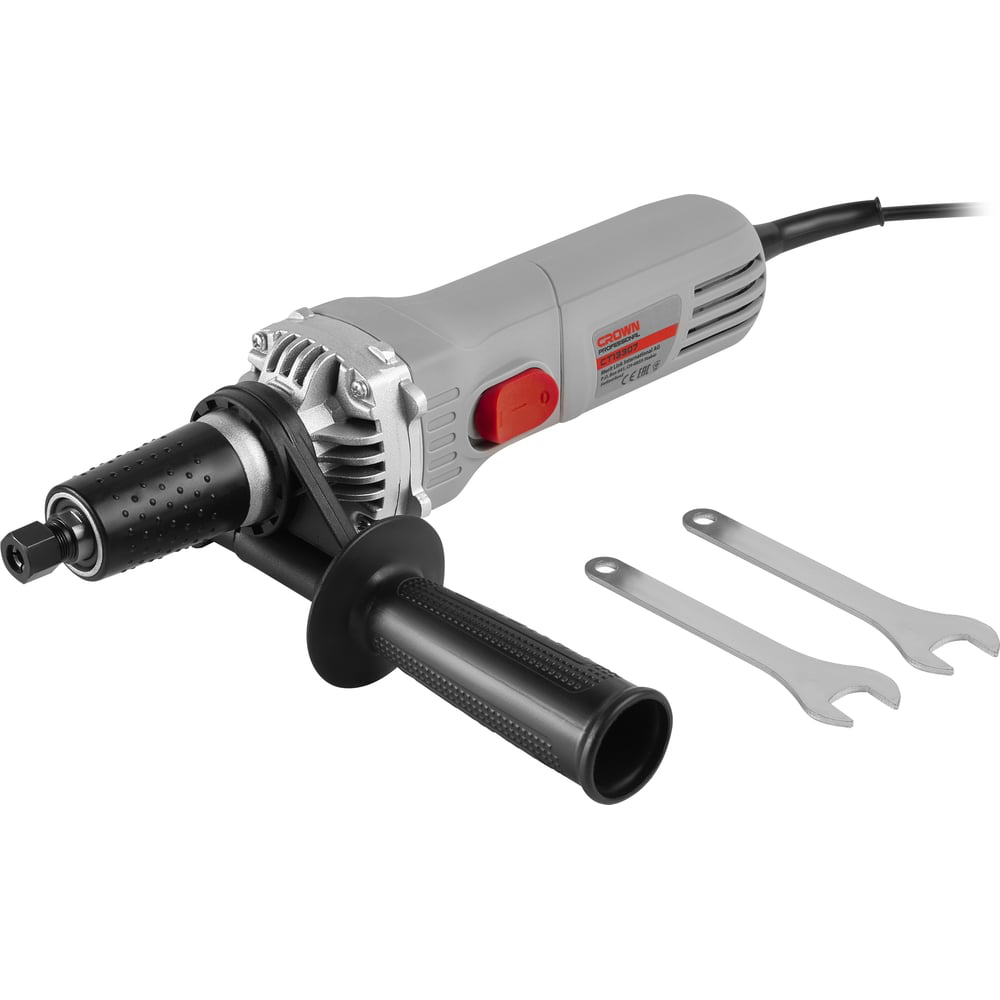Прямошлифовальная машина CROWN CT13307 - это эффективный и надежный инструмент для шлифовки дерева, металла, пластика и других материалов. Она отлично подходит для использования как в домашних условиях, так и на строительных объектах. Благодаря двигателю 600 Вт гравер обеспечивает высокую производительность и точность обработки, позволяя достичь гладкой и ровной поверхности. Регулировка скорости позволяет подобрать необходимый режим работы в зависимости от обрабатываемого материала. Преимущества данной модели включают простоту использования и удобство в работе. Прямая шлифовальная машина CROWN CT13307 оснащена эргономичной рукояткой, которая обеспечивает комфортную работу даже при длительном использовании. Компактный размер и небольшой вес делают ее удобной в транспортировке и хранении. Удлиненный корпус редуктора позволяет работать в труднодоступных местах, а также имеет обрезиненное покрытие для комфортной работы. Дополнительная рукоятка обеспечит надёжный контроль за инструментом во время работы. Упаковка Коробка