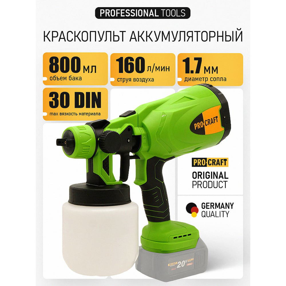 В нашем магазине «Главэлектрика» в Дзержинске, вы можете приобрести товар: «Краскопульт аккумуляторный PROCRAFT 20В 0,8л, без АКБ и ЗУPSE20» с доставкой по г. Дзержинск.