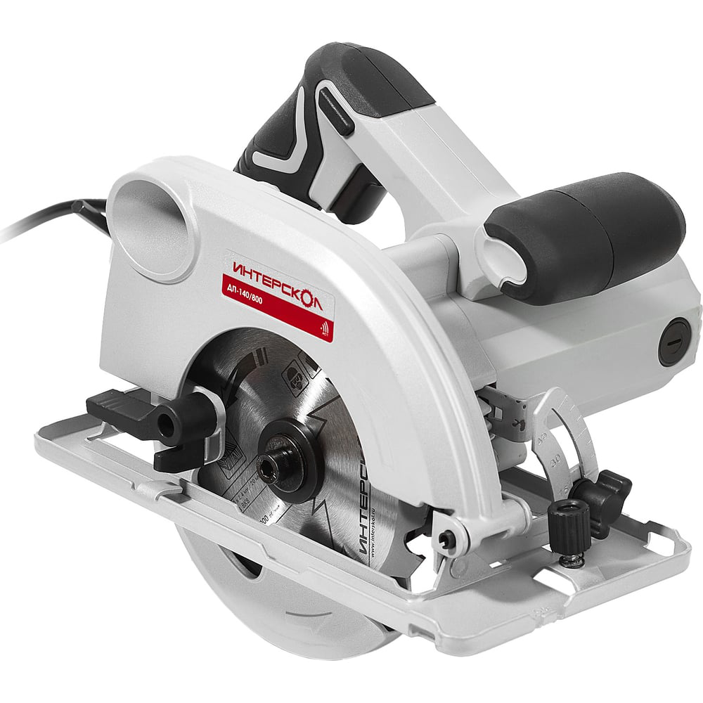 Дисковая пила Интерскол ДП-140/800 95.1.0.00 предназначена для распиловки на глубину до 45 мм разнообразных материалов (фанера, ламинат, доски). Пила оснащена двигателем мощностью 800 Вт и диском диаметром 140 мм. Работа с пилой безопасна, благодаря наличию кнопки блокировки случайного включения, защитного кожуха и блокировки шпинделя.