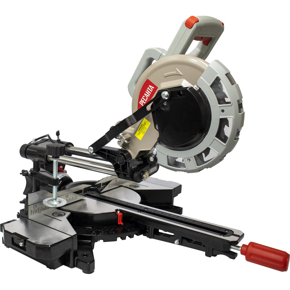 Торцовочная пила Ресанта ТП-210ПЛ применяется для распила и раскроя пиломатериалов и древесных композитов с соблюдением произвольно заданного угла запила. Возможна резка тонкостенных металлопрофиля и труб из различных материалов. Лазерный указатель обозначает линию пропила. Встроенный светильник обеспечивает подсветку рабочей зоны.В модели Ресанта ТП-210ПЛ голова пилы подвижна, что позволяет выполнять поперечные, вертикальные угловые и комбинированные разрезы. Для заготовок большого размера есть функция пиления с протяжкой, расширители стола и надежная струбцина для фиксации. Ширина пропила доходит до 340 мм при выставленном угле 90° и не превышает 240 мм при 45°. Наибольшая глубина реза варьируется от 38 до 70 мм в зависимости от угла наклона. Для ее регулировки предусмотрены ограничители.Торцовочная пила имеет прямой привод, номинальная мощность двигателя 1800 Вт. Вал редуктора защищен от случайного срабатывания, на время замены оснастки он блокируется кнопкой. Пильный диск 210 мм. Частота вращения диска в 5000 об/мин обеспечивает чистый и ровный срез. Для безопасности рабочего все подвижные режущие части закрыты защитными кожухами. Пыль отводится через патрубок в пылесборный мешок или пылесос.