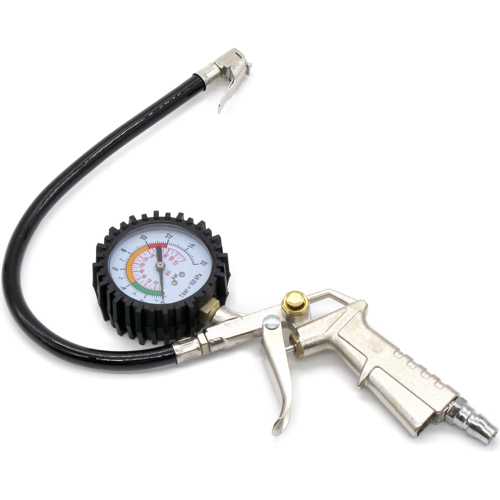 Пистолет для подкачки шин с манометром – это профессиональный пневмоинструмент, который является одним из основных на различных СТО, в автомастерских, сервисных центрах и гаражах. В зависимости от выбранной насадки, также может применяться для продувки – очистки разных деталей сильным напором воздуха. Максимальное давление 16 Атм, длина шланга 35 см.