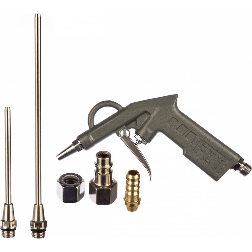 Обдувочный пистолет с набором насадок FIT IT 81067 используется для продувки и очистки различных поверхностей от пыли и загрязнений. Дополнительные насадки помогают добраться до труднодоступных мест. Сам инструмент выполнен из алюминия, насадки из латуни. Шланг подачи сжатого воздуха крепится с помощью соединения байонет.