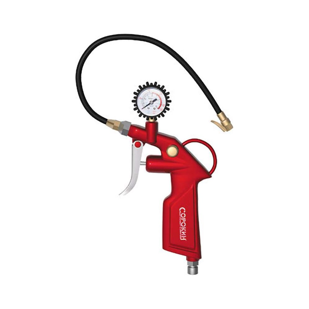 Пневматический пистолет для подкачки шин с манометром Сорокин 2.46 - профессиональный инструмент, применяемый для подкачки шин в автосервисах и шиномонтажных мастерских. Также пистолет может быть использован в качестве продувочного инструмента для очистки деталей и поверхностей. Оснащен манометром, который позволяет контролировать давление в шинах во время подкачки. Пневмопистолет имеет гибкий шланг, который позволяет работать в узких и труднодоступных местах.