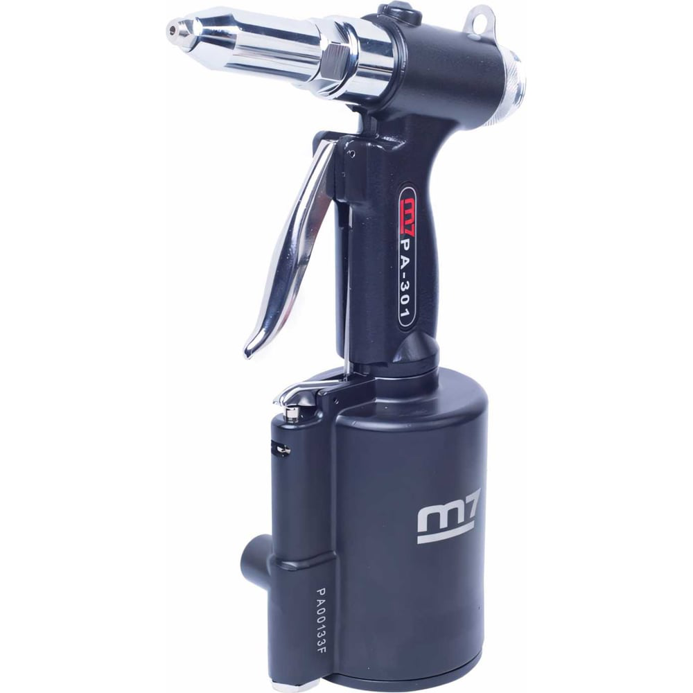 Пневмогидравлический заклепочник MIGHTY SEVEN PA-301 - современное устройство для соединения различных деталей с помощью заклепок. Приспособление широко используется в авиационной, автомобильной, а также судостроительной промышленности. Агрегат работает на сжатом воздухе, что обеспечивает высокую производительность работы при минимуме усилий. Для подключения заклепочника к компрессору рекомендуется использовать шланг с внутренним диаметром 10 мм.