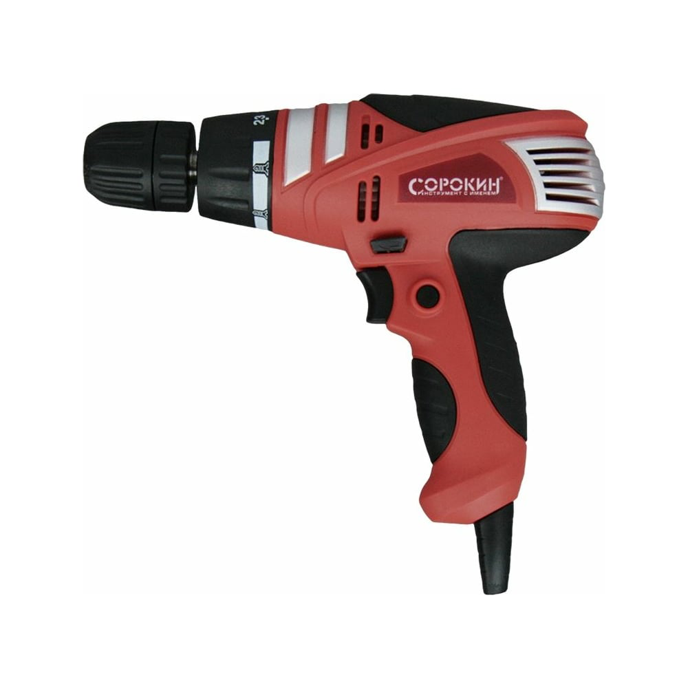 Электрическая дрель-шуруповерт Сорокин 29.3 предназначена для сверления отверстий и работ с крепежами. Благодаря быстрозажимному патрону обеспечивается быстрая и безопасная замена расходного инструмента. Рядом со шпинделем есть муфта регулировки крутящего момента, на выбор имеются 23 позиции плюс отдельно выведен режим сверления. Модель очень проста и удобна в эксплуатации, отлично подходит для нечастого применения в домашних условиях.