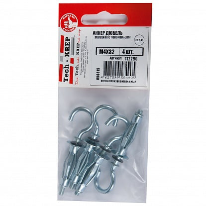 В нашем магазине «Главэлектрика» в Дзержинске, вы можете приобрести товар: «Дюбель (анкер) Молли RO (с полукольцом) М4х32 (4 шт) - пакет Tech-Krep» с доставкой по г. Дзержинск.