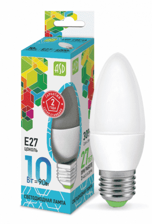 Лампа светодиодная (LED) «свеча» d38мм E27 10Вт 210-240В 4000К ASD