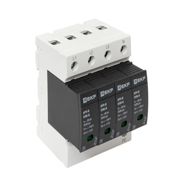 УЗИПы серии ОПВ относятся к классу II и применяются для защиты токораспределительной сети объекта от коммутационных помех или как вторая ступень защиты при ударе молнии. Тип "B" характеризуется номинальным разрядным током 30кА, максимальным разрядным током 60кА с формой волны 8/20 мкс.