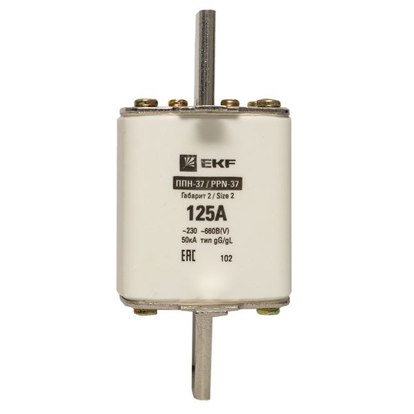Плавкая вставка ППН-37 400/125А габарит 2 EKF. Предохранители плавкие ППН EKF, укомплектованные плавкими вставками типа gG/gL, предназначаются для защиты кабельных линий и промышленных электроустановок от токов перегрузки и короткого замыкания. Предохранители применяются в электрических сетях переменного тока частотой 50 Гц с напряжением до 660В. Применяются для крепления в распределительных и вводно-распределительных устройствах. Предохранители плавкие ППН могут устанавливаться в основание с держателем, а также в специально предназначенные рубильники. В комплект поставки предохранителей плавких ППН основание с держателем не входит и приобретается отдельно.