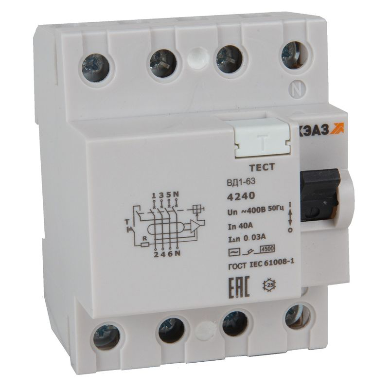 В нашем магазине «Главэлектрика» в Дзержинске, вы можете приобрести товар: «УЗО 4П 40А 300mА электронное-КЭАЗ ВДТ без защиты от сверхтоков ВД1-63-4440-АС-УХЛ4» с доставкой по г. Дзержинск.