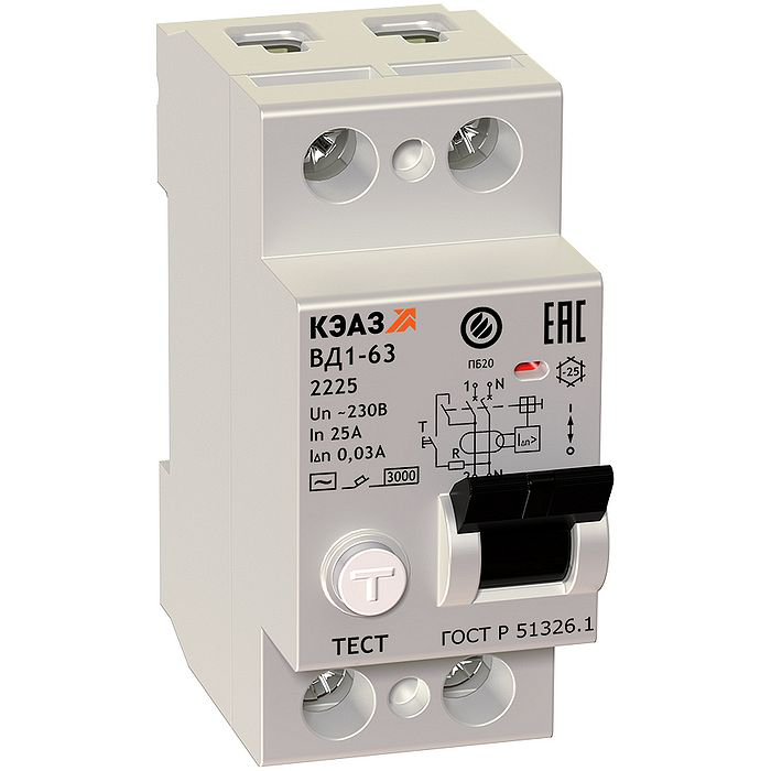 УЗО КЭАЗ ВД1-63 2P 25А 4.5 кА, 30 мА (A), 221928 - это двухполюсное устройство защитного отключения, предназначенное для обеспечения безопасности электрических сетей и оборудования. Данное УЗО имеет номинальный ток 25А, предельный короткозамыкательный ток 4.5 кА и чувствительность к утечке тока 30 мА. Продукт обеспечивает надежную защиту от перегрузок, коротких замыканий и утечки электрического тока, что позволяет предотвратить возможные аварийные ситуации и обеспечить безопасность электрооборудования и пользователей. КЭАЗ ВД1-63 2P 25А 4.5 кА, 30 мА (A), 221928 отличается высоким качеством исполнения и надежностью в работе, что делает его незаменимым компонентом в электрических сетях любого типа.