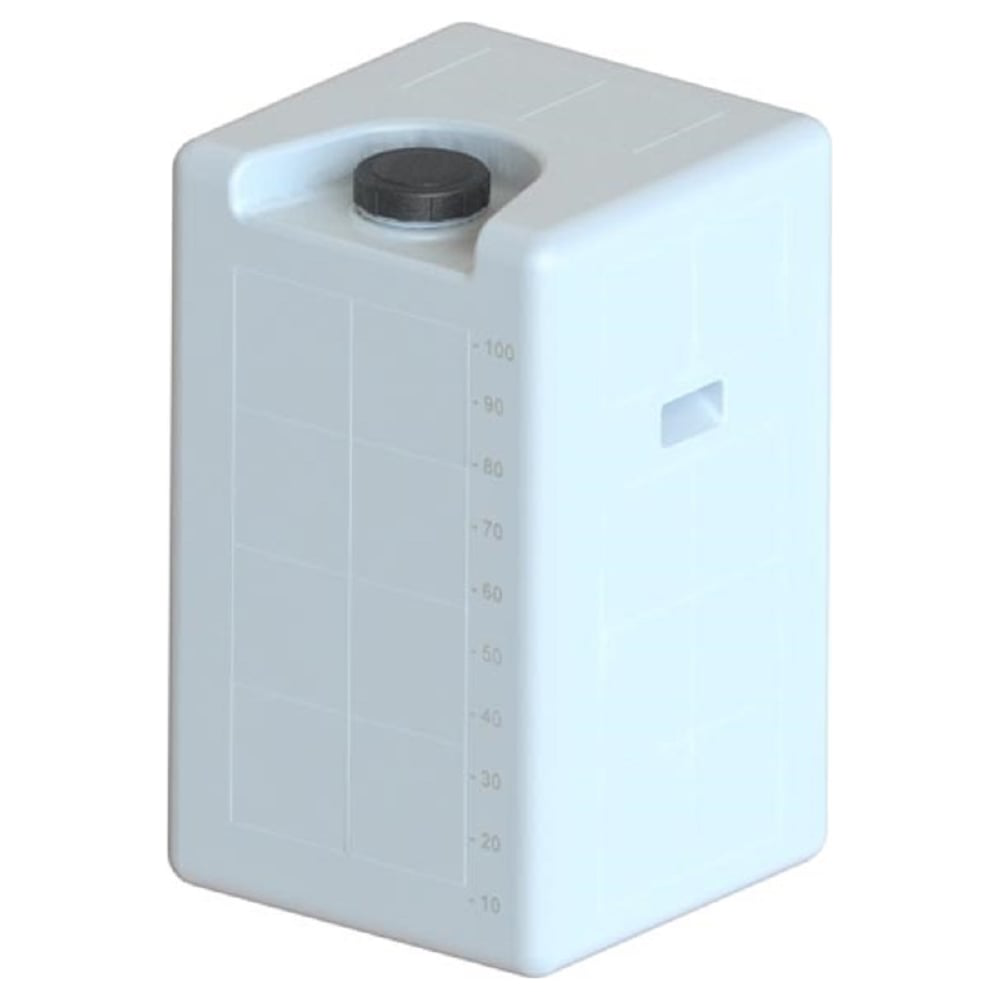 Дозировочный контейнер на 100 л предназначен для хранения и накопления воды, холодных пищевых продуктов, различных жидкостей, в т.ч. агрессивных по согласованию с ООО «АНИОН»; для использования в системах хозяйственно-питьевого водоснабжения, в системах водоочистки и водоподготовки. Используется в составе дозирующих установок при подготовке питьевой воды, дезинфицирования воды в бассейнах. Бак имеет прямоугольную форму, позволяющую максимально эффективно использовать пространство для хранения. В верхней части емкости предусмотрена плоская площадка для установки дозирующего насоса, мешалки, датчика уровня, расходомера. На корпус нанесена шкала для ориентировочного определения объема жидкости.